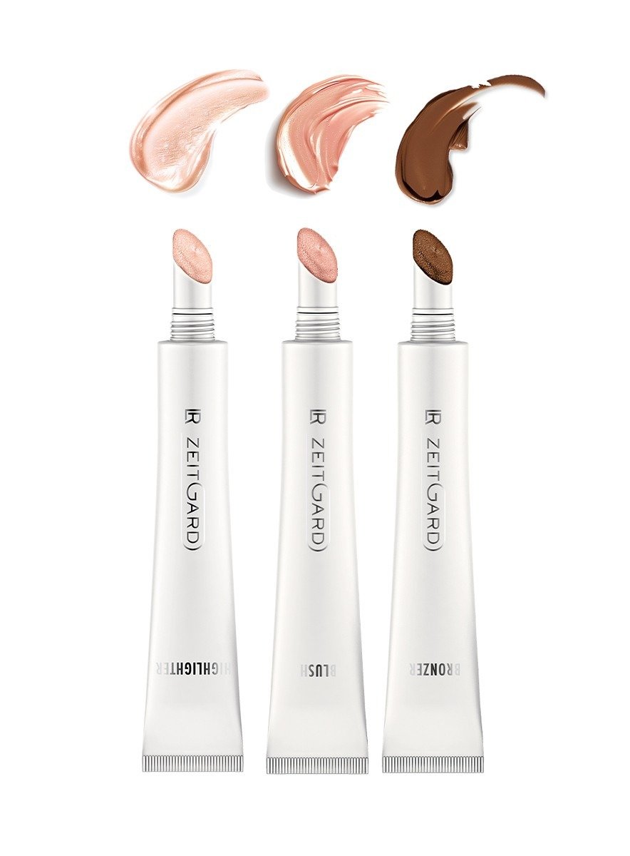Un trio de maquillage liquide haut-de-gamme : bronzer contouring, blush soyeux, highlighter glowy. Pour un teint lumineux, sculpté et éclatant – prêt en quelques gestes.